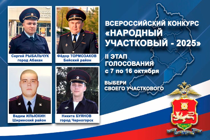 В первом этапе жители Хакасии голосовали за претендента на звание «Народный участковый». Из общего количества заявленных кандидатур во второй этап прошли 4 участковых уполномоченных полиции , набравших наибольшее количество голосов.
