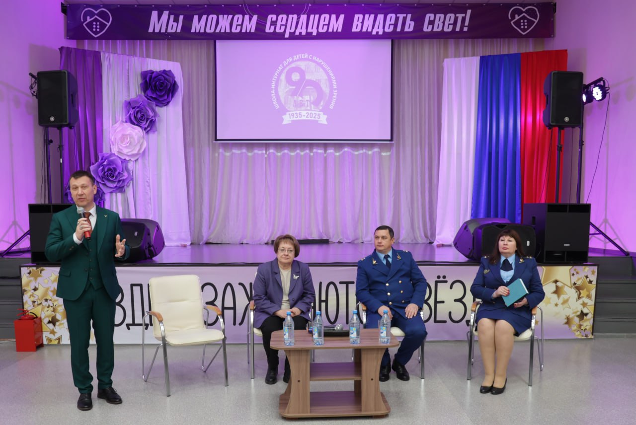 Сегодня заместитель прокурора Республики Хакасия Денис Стонт пообщался с детьми в ГБОУ Республики Хакасия «Школа-интернат для детей с нарушениями зрения».