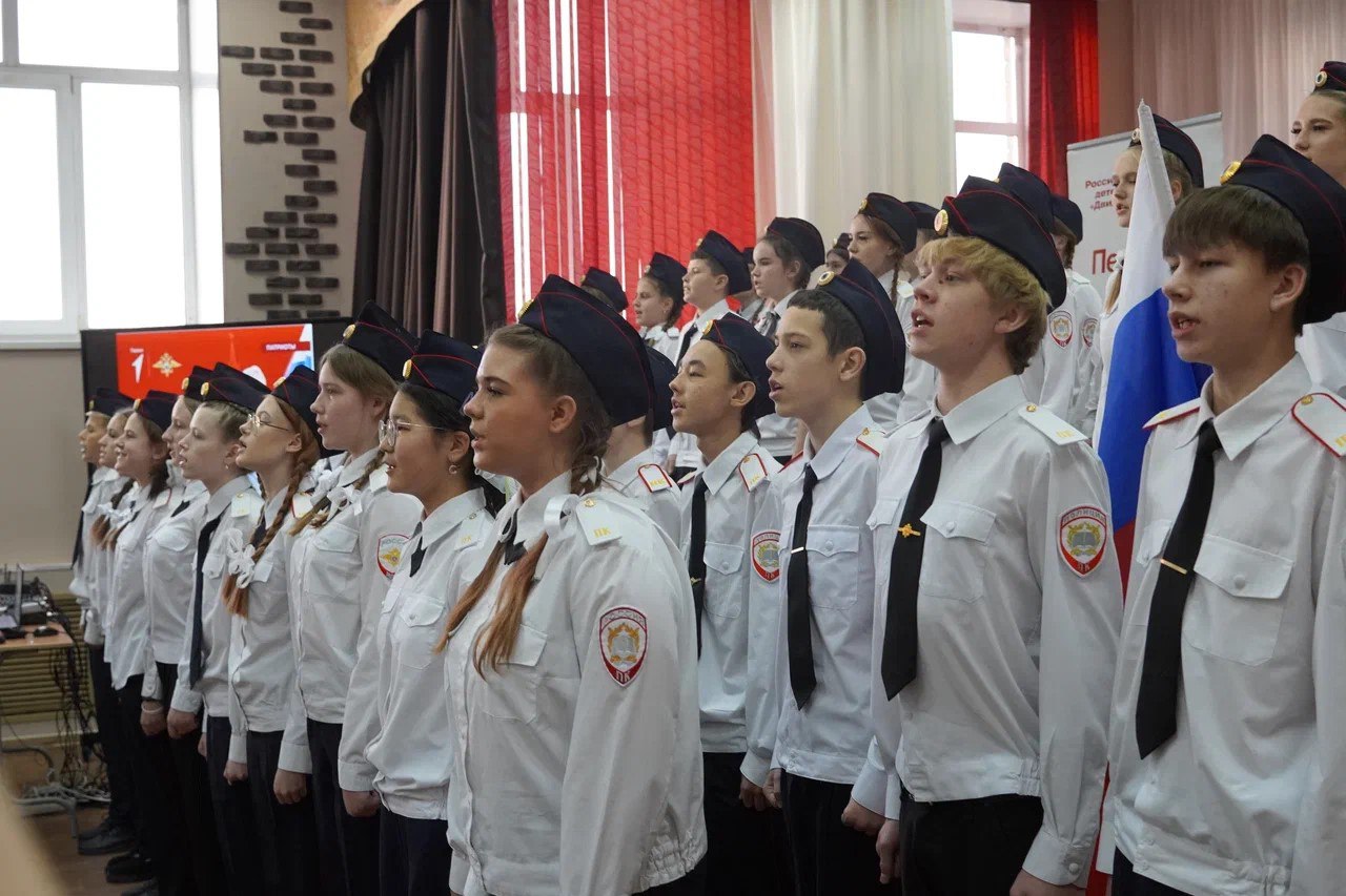 После произнесённых слов, юных граждан вокально-хоровым номером поздравили учащиеся полицейского класса.