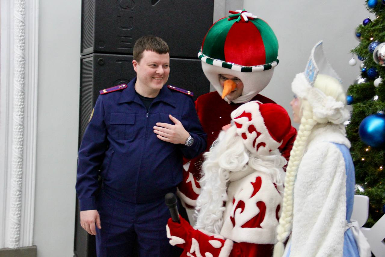В преддверии Нового года в Главном следственном управлении Следственного комитета Российской Федерации по Красноярскому краю и Республике Хакасия прошёл праздничный утренник для детей сотрудников. Вокруг нарядной ёлки собрались более 20 юных гостей - от малышей до подростков - чтобы встретить сказочных персонажей: Деда Мороза, Снегурочку, Снеговика и Эльфа.