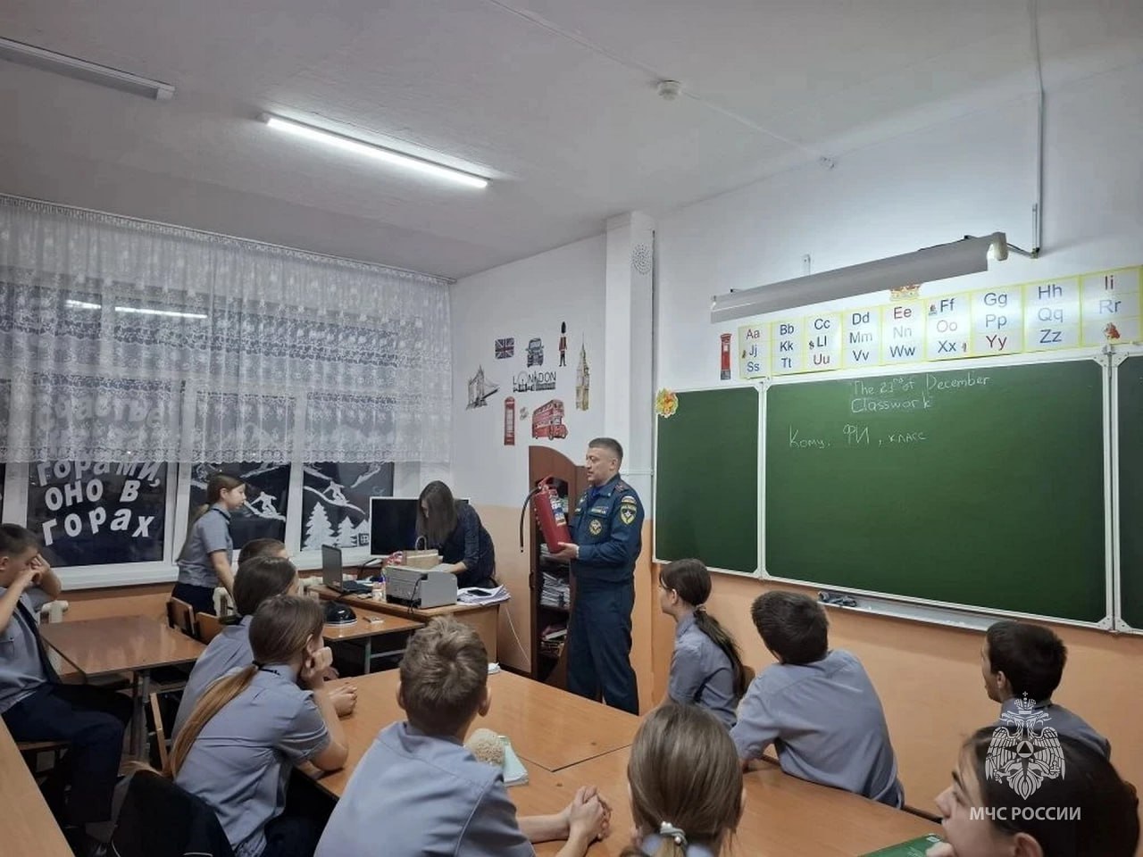 В Подсинской школе — урок для шестиклассников: как пользоваться огнетушителем, безопасно заряжать гаджеты и почему пиротехника — не игрушка.
