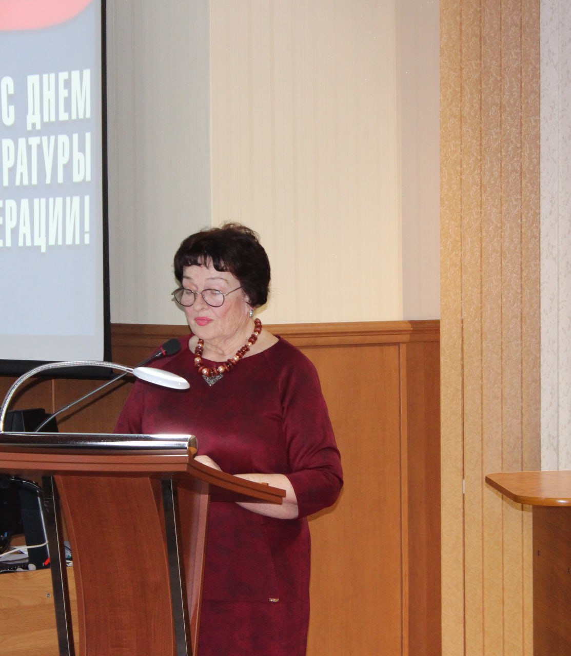 От имени ветеранов и пенсионеров прокуратуры с поздравлением выступила председатель регионального отделения ветеранов прокуратуры Потапова Ольга Николаевна, пожелав действующим работникам прокуратуры успехов в деле укрепления законности на территории региона.