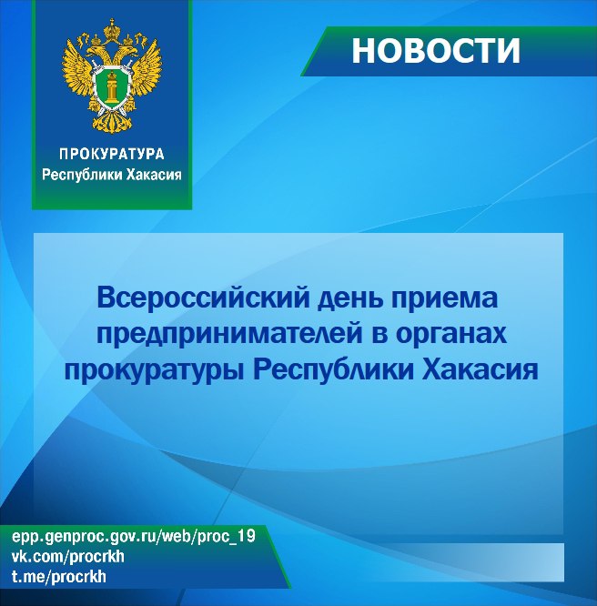 3 февраля 2026 года в прокуратуре Республики Хакасия в течение рабочего дня будет проводиться Всероссийский день приема предпринимателей (проводится первый вторник каждого месяца).