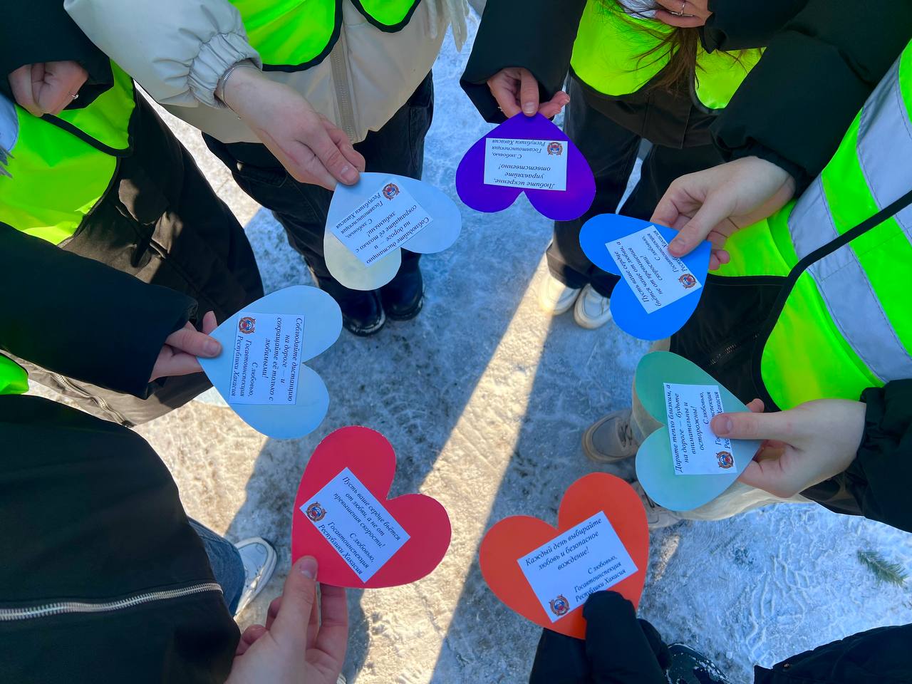 Студенты не только подарили автолюбителям сердца с теплыми и приятными пожеланиями, но и напомнили о том, как заботиться о своей безопасности и безопасности окружающих на дорогах.