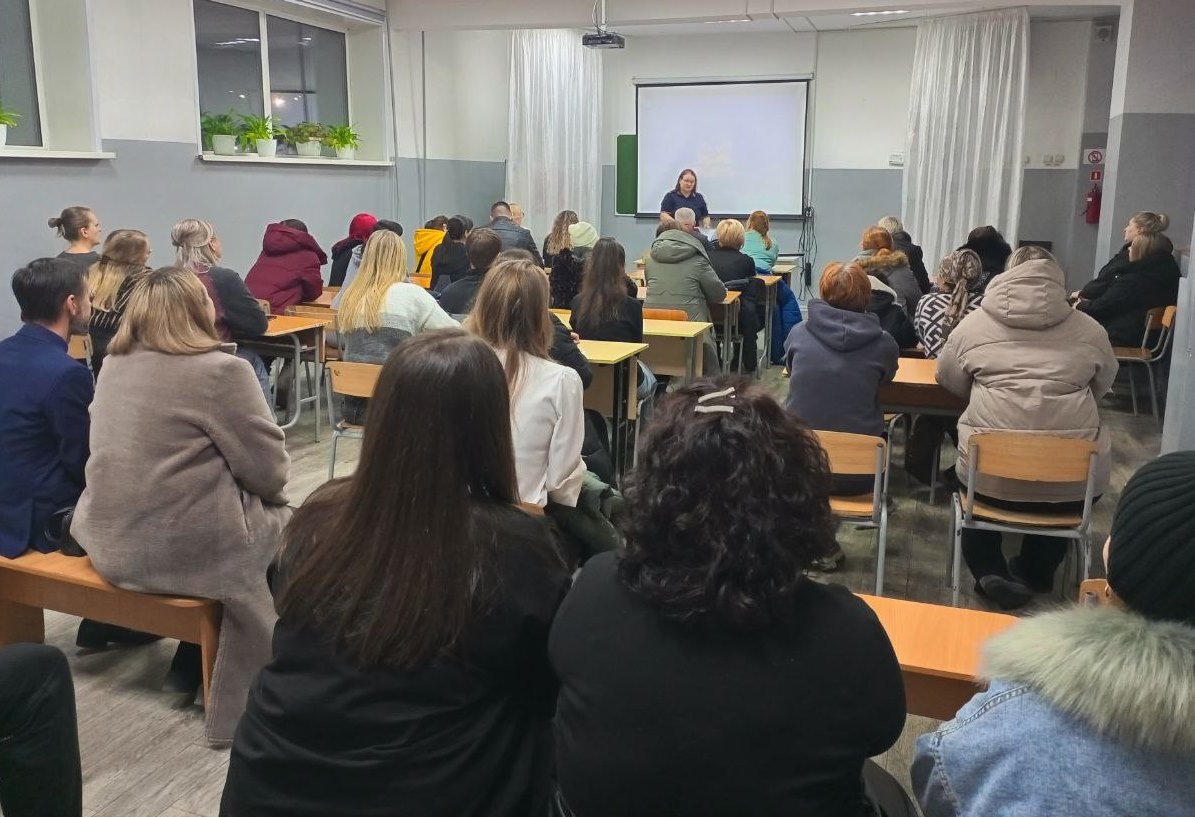 В черногорской школе № 9 состоялось родительское собрание. Одним из спикеров стала руководитель подразделения по делам несовершеннолетних городской полиции Татьяна Лядова .