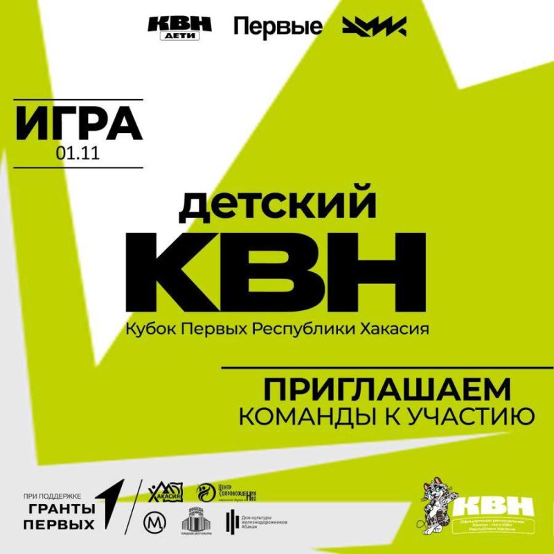 1 ноября в Хакасии состоится детский конкурс юмора и творчества — Детский КВН «Кубок Первых». Сегодня открыт прием заявок от команд с участниками в возрасте от 6 до 18 лет.Это уникальная возможность для юных талантов проявить себя на большой...