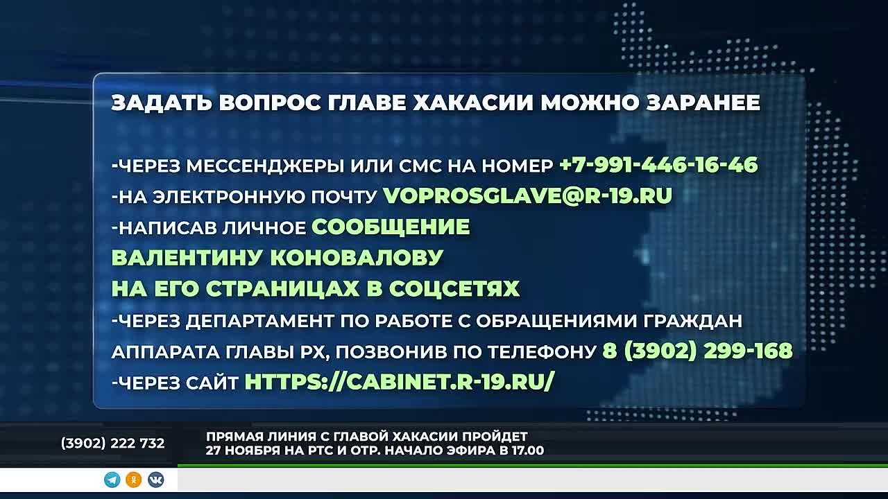 ЖИТЕЛИ ХАКАСИИ МОГУТ ЗАДАТЬ ВОПРОС ВАЛЕНТИНУ КОНОВАЛОВУ