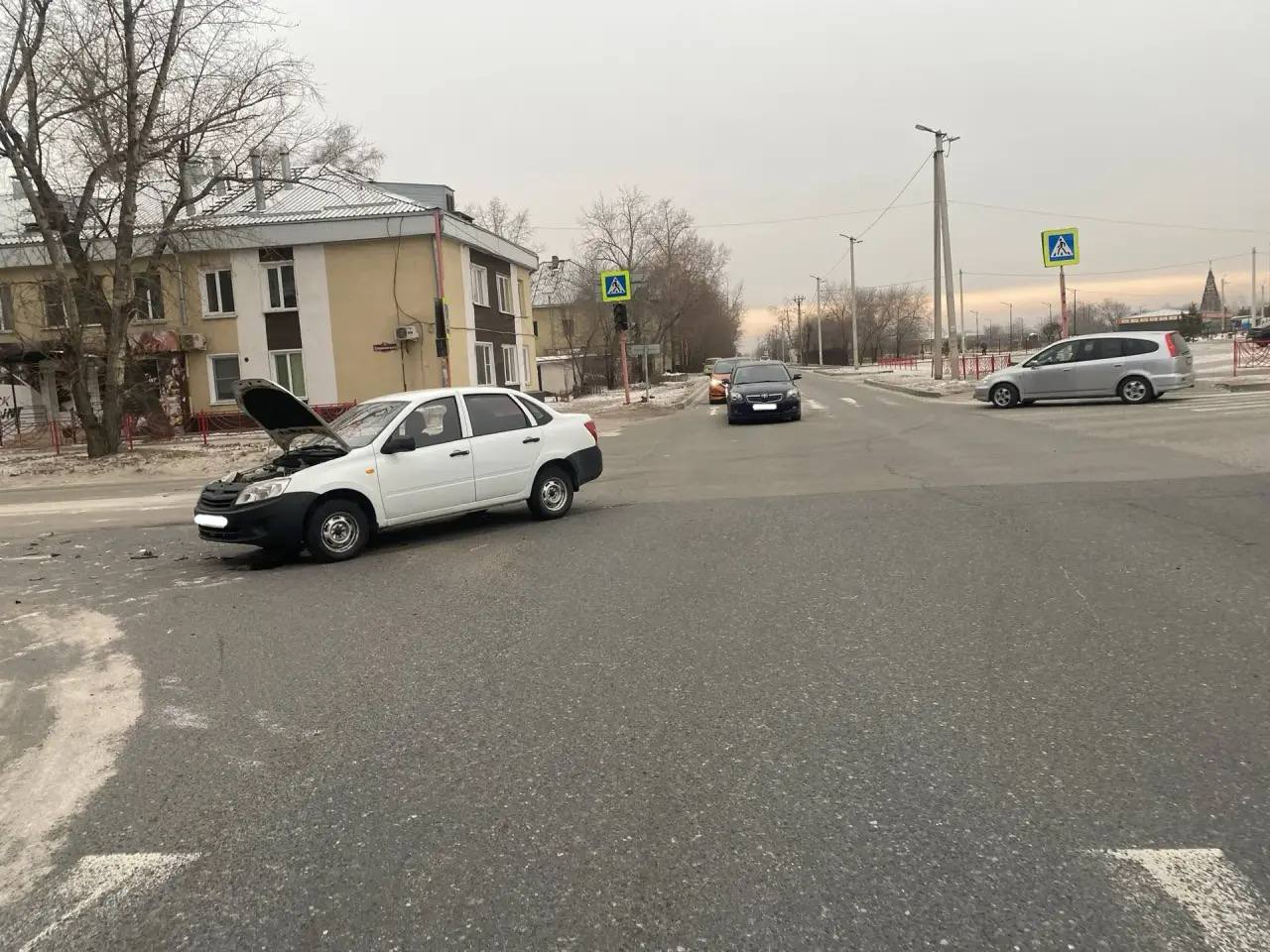 На улице Дзержинского пенсионерка за рулём Mazda Familia не пропустила Ладу Гранта, травмы получила пассажирка отечественного авто.