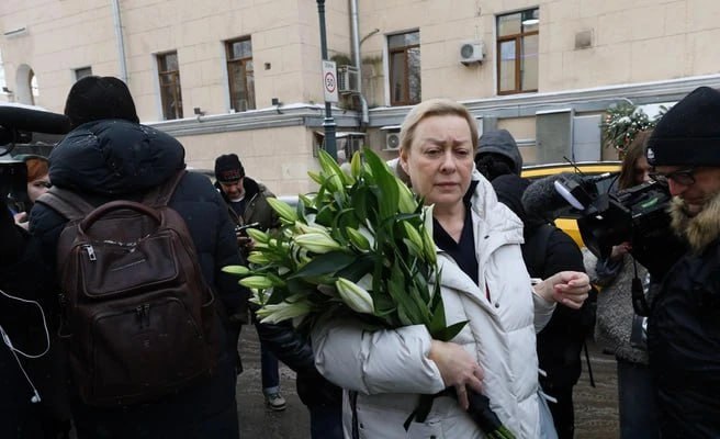 Поклонники и коллеги актрисы весь день несли цветы к Московскому драматическому театру имени Пушкина.