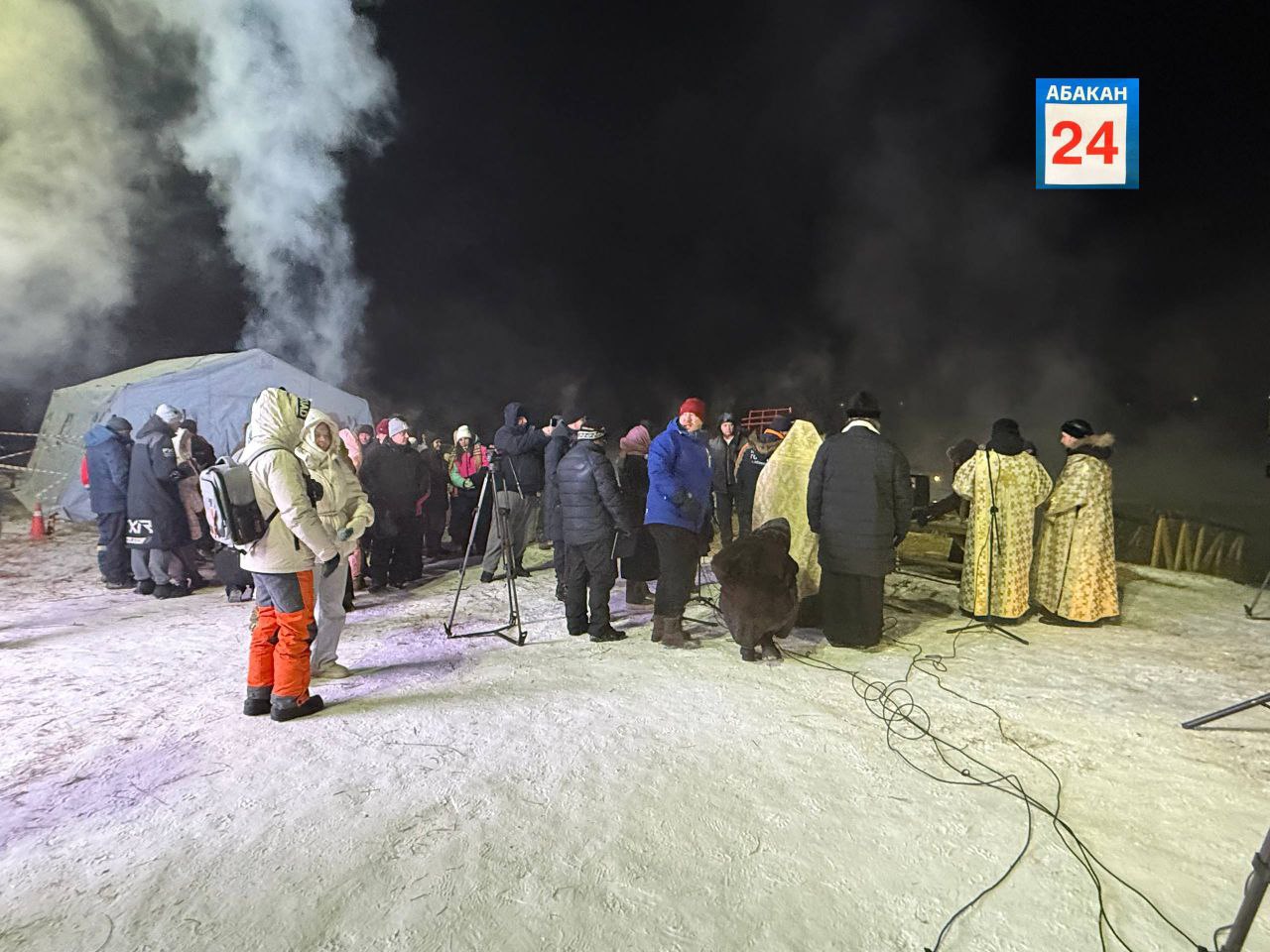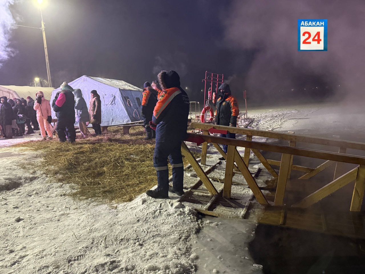Желающие окунуться в Крещенскую воду уже собираются на берегу абаканской зоны отдыха.