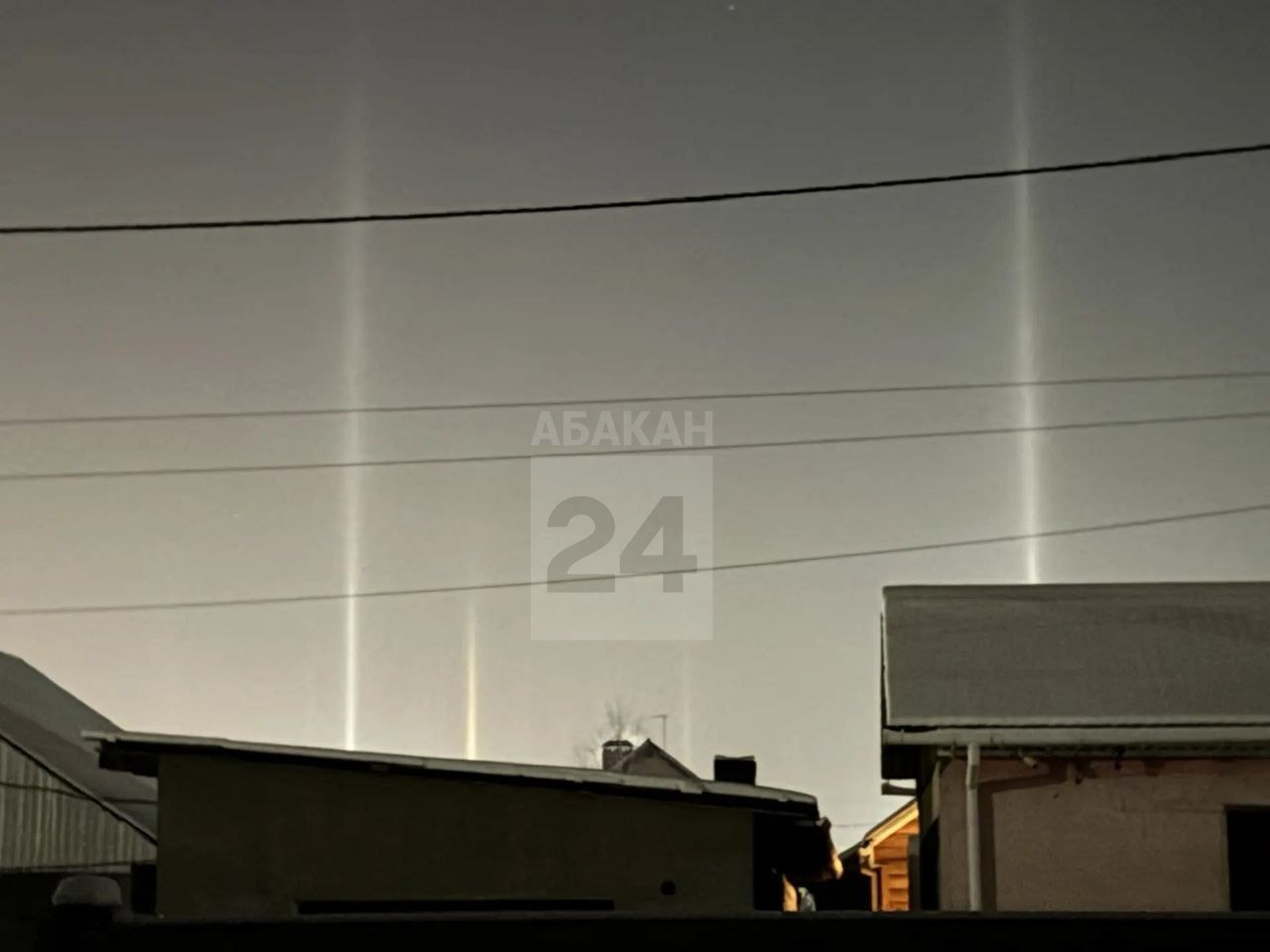 Устремившиеся ввысь яркие вертикальные полоски -это необычное оптическое явление.
