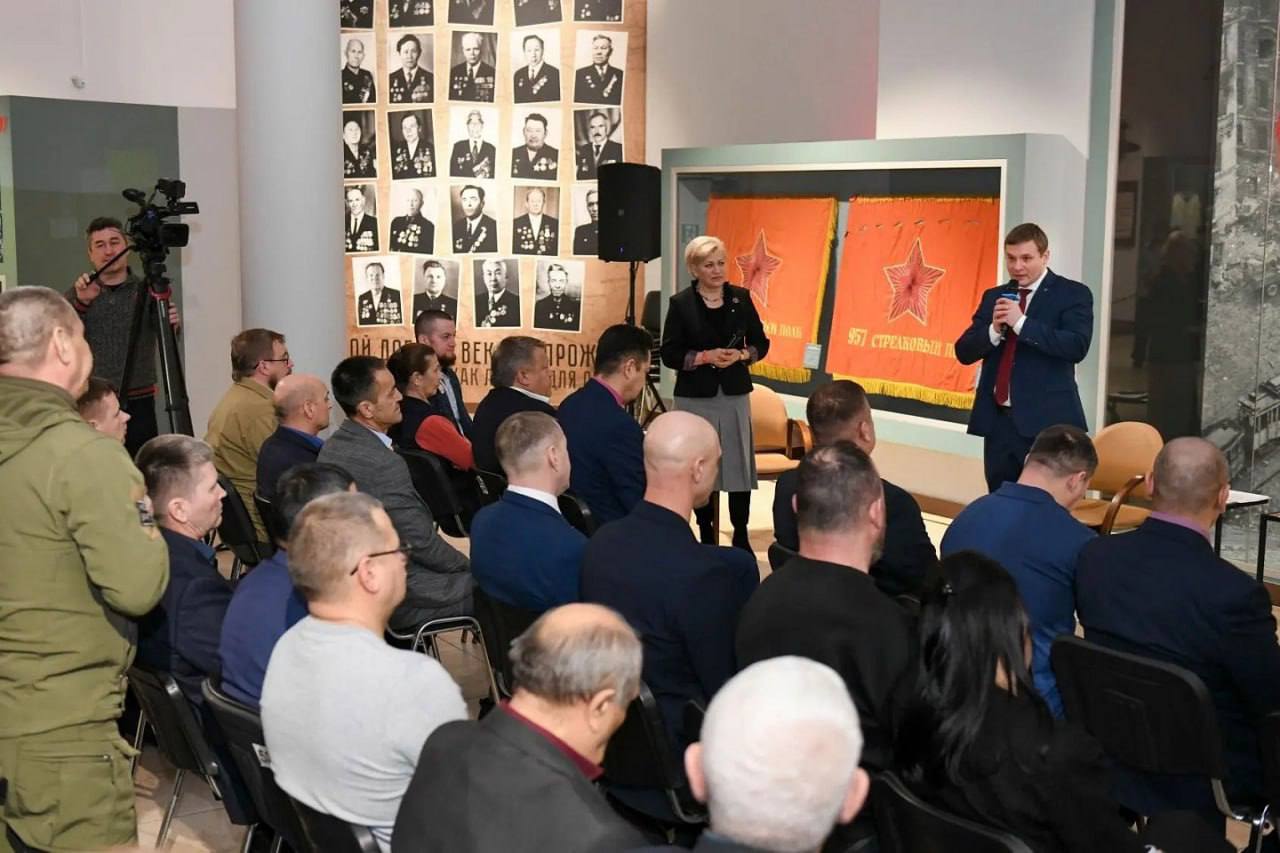 3 февраля в Хакасском национальном краеведческом музее имени Л.Р. Кызласова прошла встреча участников республиканского кадрового проекта «Герои Хакасии» с главой республики Валентином Коноваловым и депутатом Государственной Думы, первым заместителем председателя Комитета по делам СНГ, евразийской интеграции и связям с соотечественниками Казбеком Тайсаевым. В обсуждении также приняли участие представители ветеранских организаций Александр Векшин и Виктор Гайкин и министр труда и социальной защиты населения Хакасии Татьяна Раменская.