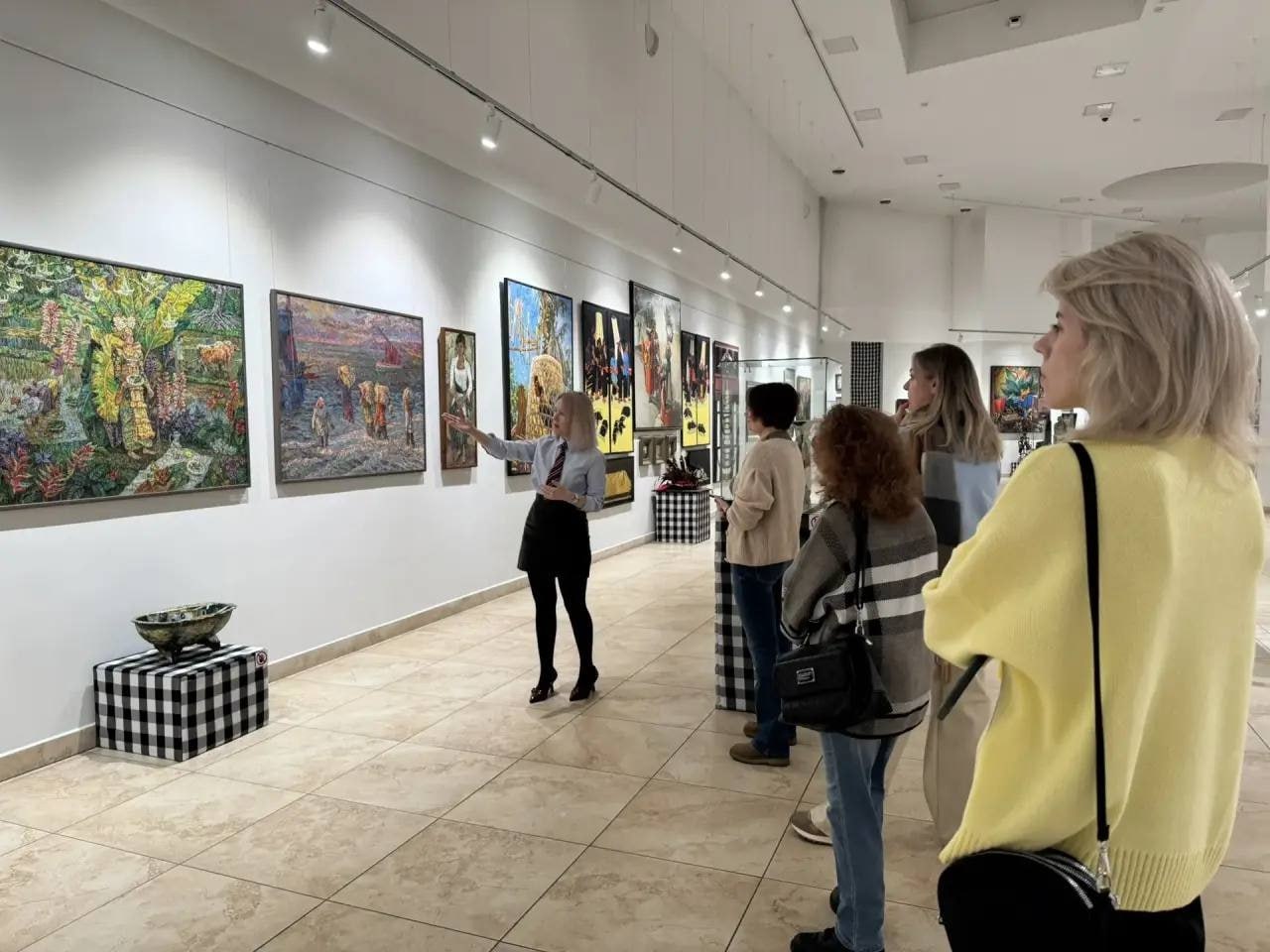 Сегодня организаторы оригинально подошли к началу экскурсии. Гости услышали произведения мультиинструментального проекта "Tlmaly". Живое исполнение подарило особый настрой для путешествия по миру живописи, в которое экскурсанты отправились вместе со старшим методистом музея Таисией Столбовой.