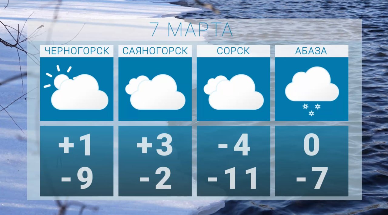 Не делайте друг другу больно, господа!ПРОГНОЗ ПОГОДЫ от Татьяны ИвановойСегодня, 7 марта, по Республике переменная облачность, местами небольшой снег.Ветер северо-восточный 2-7м/с, местами порывы...
