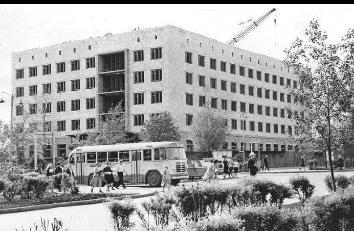 Гостиница строилась в период активного развития Абакана как столицы Хакасской автономной области, когда формировался современный облик проспекта Ленина. Рядом, в 1968 году, был сдан новый корпус Педагогического института. Фото из архива В.Г. Вяткина, открытых источников