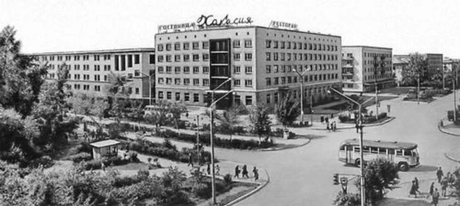 Гостиница «Хакасия» на перекрёстке проспекта Ленина – улицы Щетинкина строилась в 60-х годах