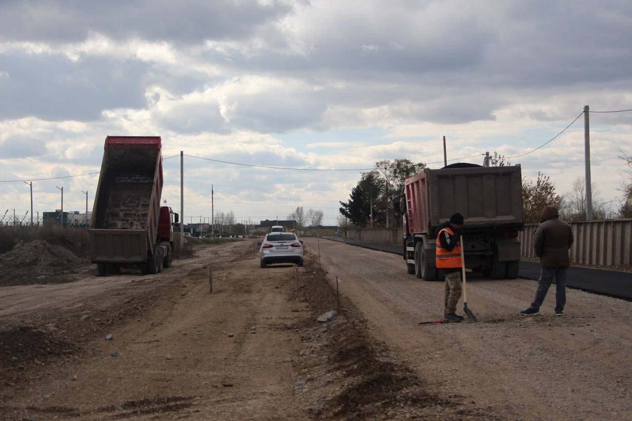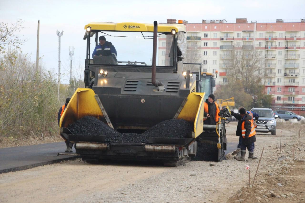 Асфальтируем участок улицы Пирятинская от ЦСКА к усадебной застройке в 5 жилом районе до федеральной дороги: это следующий этап нашей работы над магистральной улицей. В прошлом году мы подготовили основание под дорогу, сейчас уже кладём асфальт.