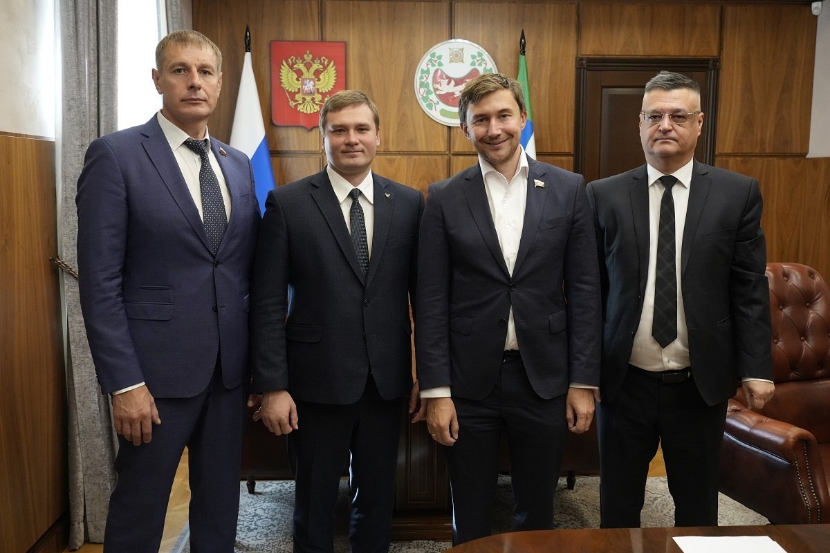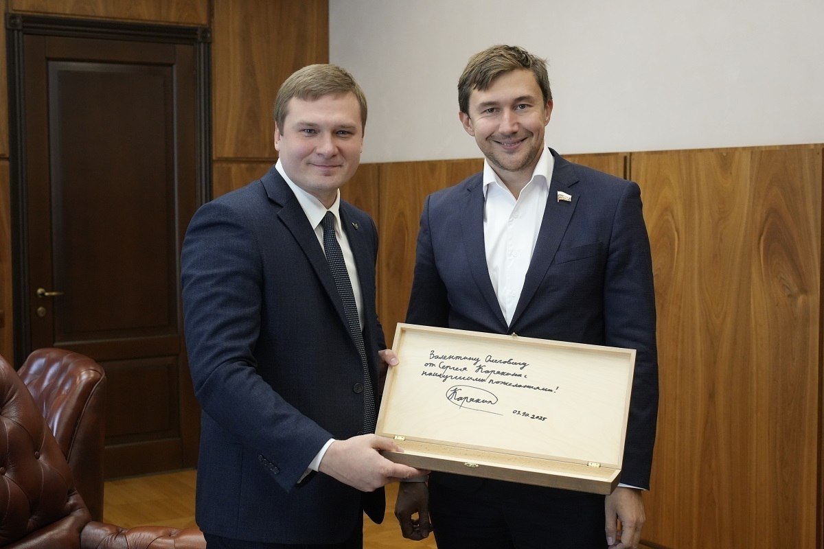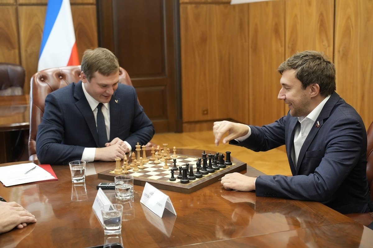 В правительстве Хакасии состоялась встреча главы республики Валентина Коновалова с легендарным гроссмейстером, многократным чемпионом мира Сергеем Карякиным, прибывшим в Абакан. Он является президентом Федерации шахмат Московской области, а также сенатором в Совете Федерации от Республики Крым.