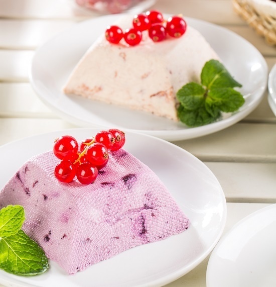 3. Получившуюся массу соединить с подготовленным творогом. Разделить её на три части и добавить в каждую порцию по джему или варенью для создания ярких цветов.