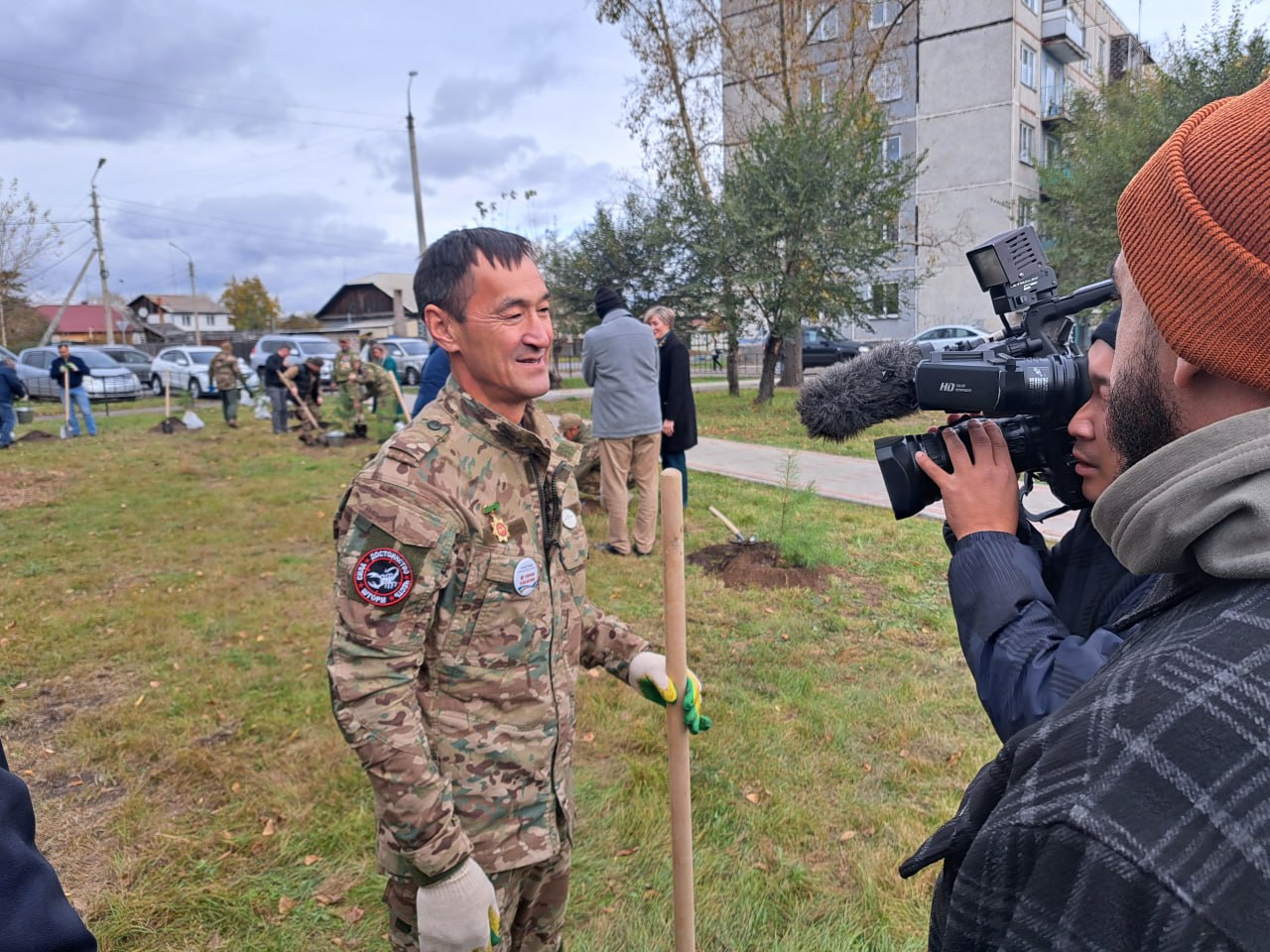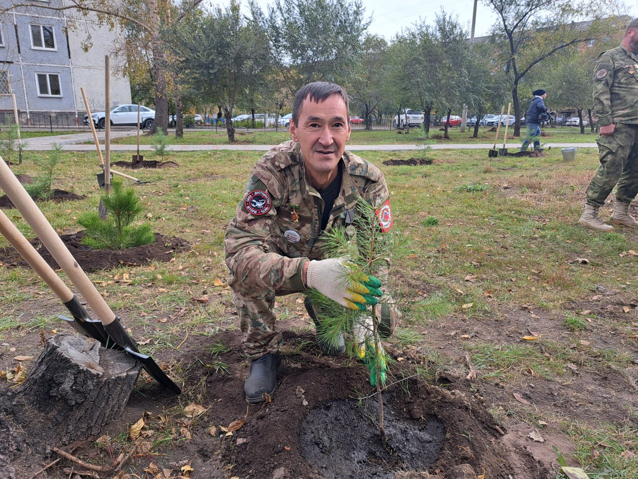 Сегодня участники республиканской образовательной программы «Герои Хакасии» высадили в Черногорске сосны в сквере "Звезда".