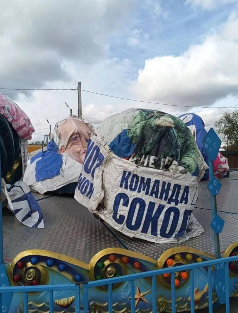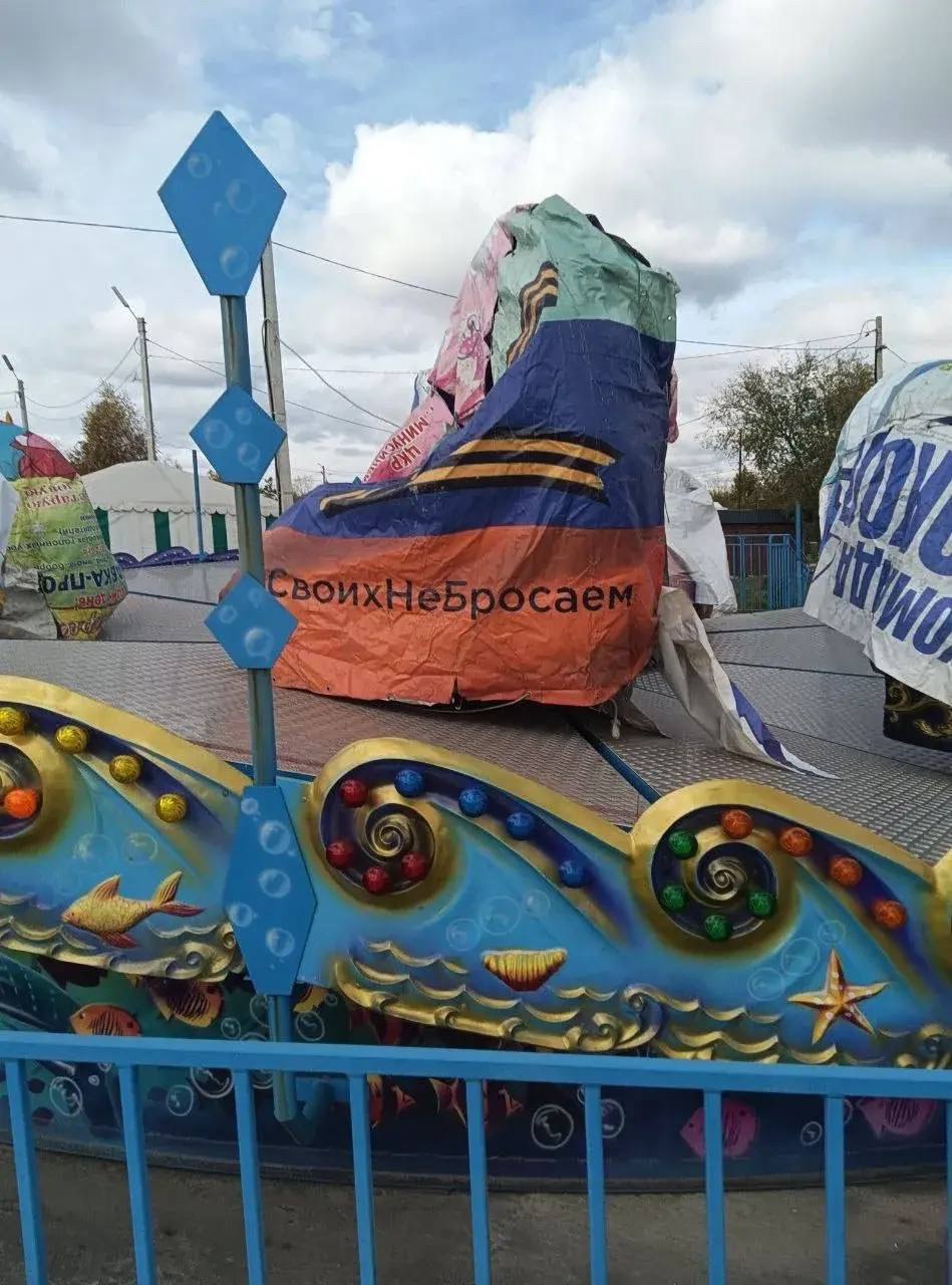 В Хакасии пообещали наказать тех, кто накрыл аттракционы плакатами с георгиевской лентой и портретом ветерана СВО. Так в парке Черногорска решили «законсервировать» оборудование.