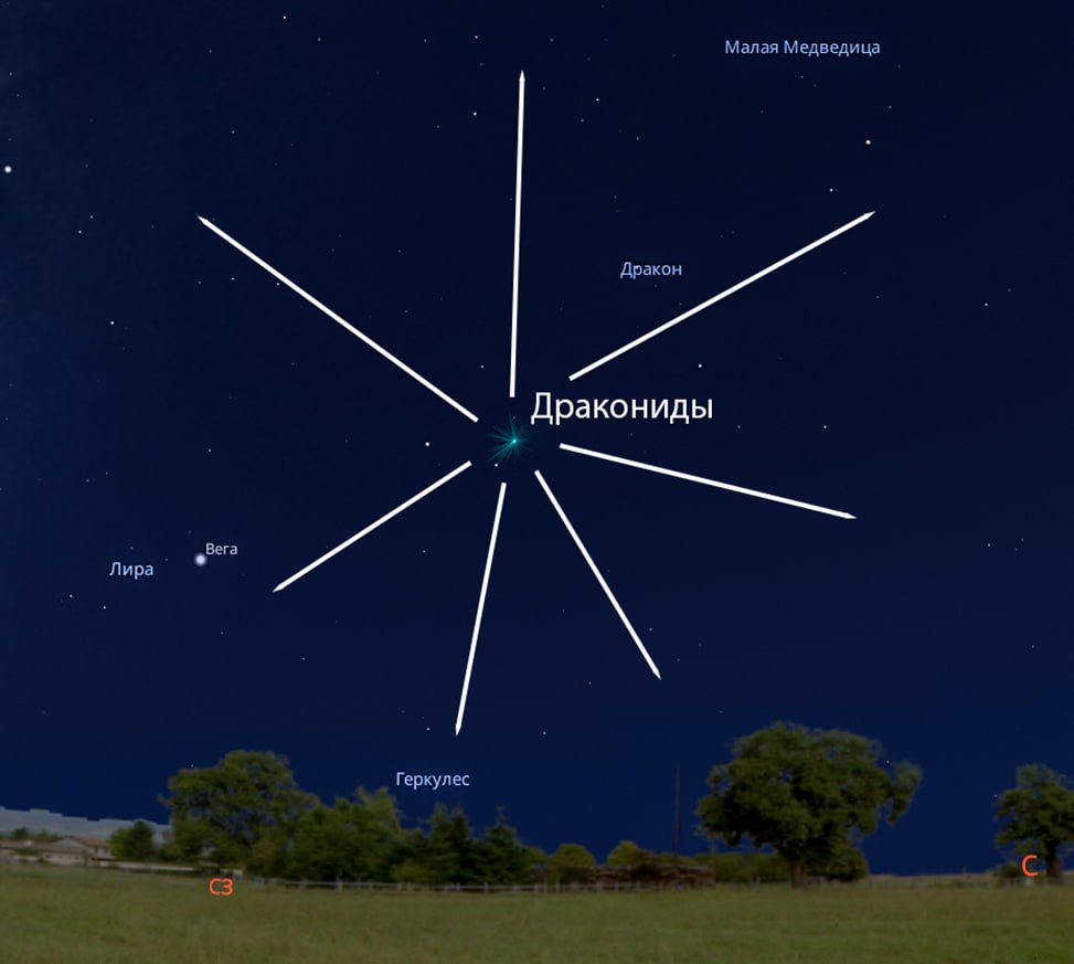 Этот осенний звездопад ежегодный. Его название происходит от созвездия Дракона, в котором и находится точка, откуда "вылетают" метеоры.