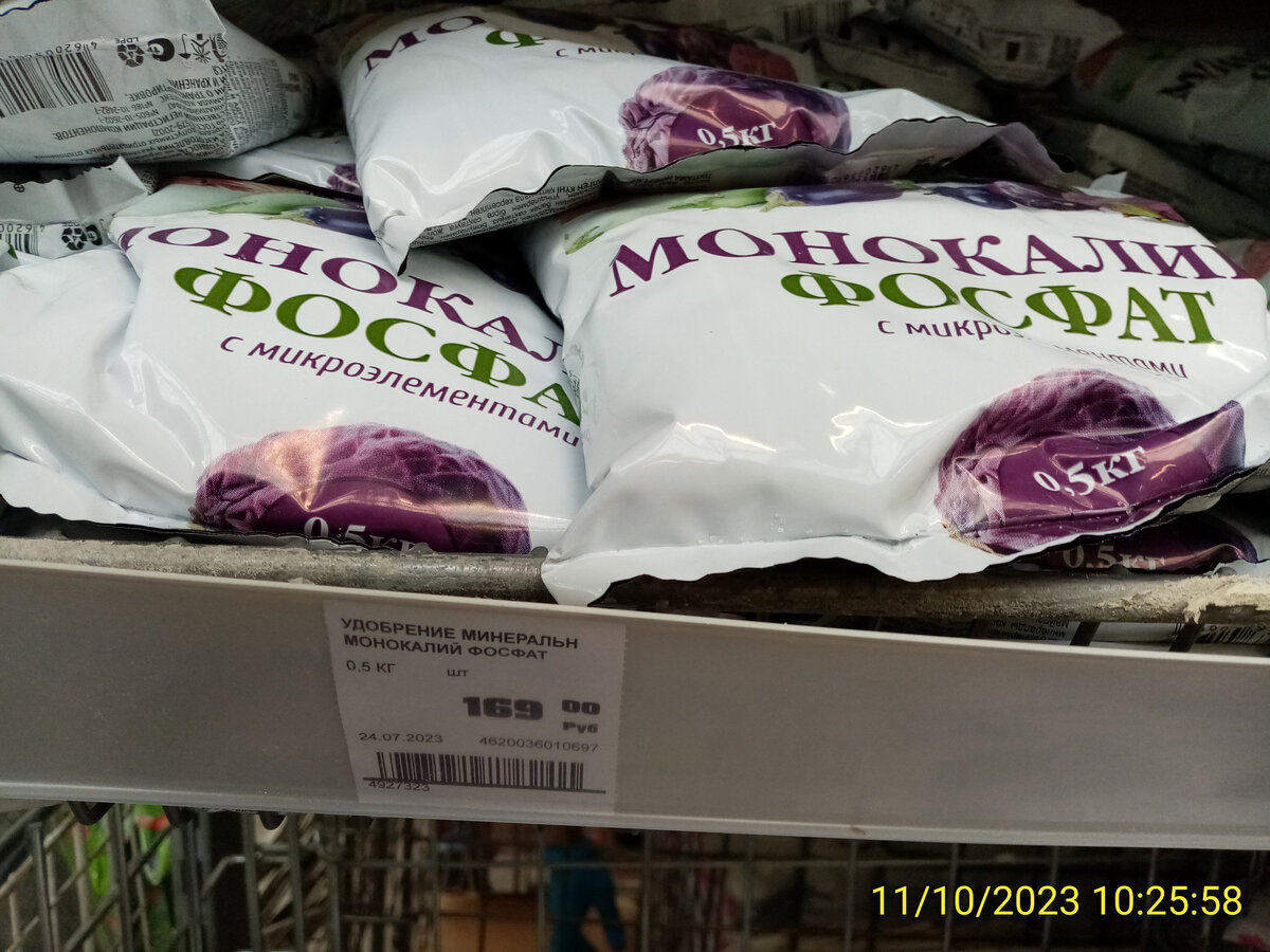 - Монокалий фосфат: 0,5 кг за 169 руб.; 20 г — всего 11 руб.