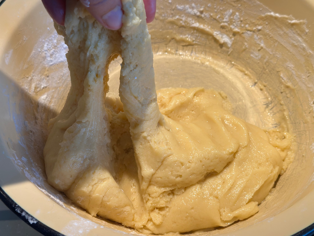 Затем из теста формируют маленькие комочки, которые выпекаются в специальной форме для печенья. Готовность можно определить по легкому золотистому цвету изделий.