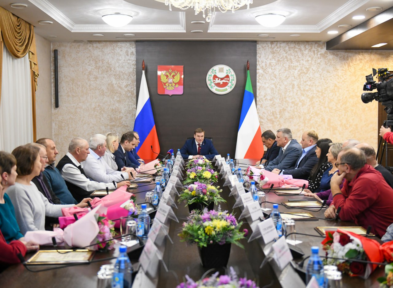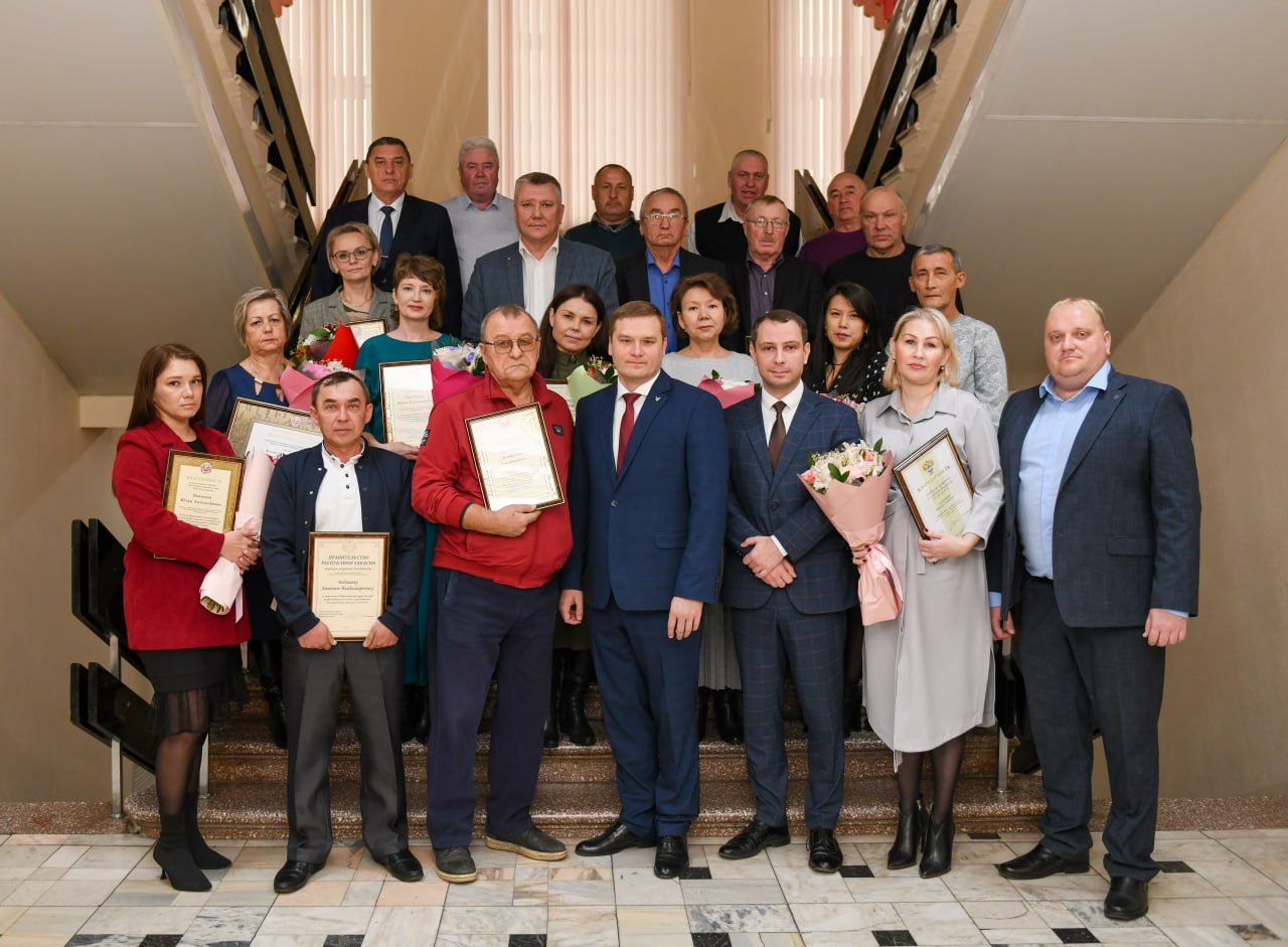 Почётными грамотами и благодарностями наградил сегодня жителей республики, которые внесли заметный вклад в развитие дорожного хозяйства: Е. Г. Захаренко, А. С. Спатарь, В.Г. Сорокин, Т.А. Жигунова, А.Д. Михайленко, В.Г. Флотский, С.Ф. Беспалько, А.Н. Каратаев, А. В. Продолякин, А.Г. Леонидов, В.Н. Павлова, С. А. Ратов, И. В. Лиходиенко, А. В. Стрелочных, Ю. А. Попцева, А. А. Аболевич, Е. В. Бодмаев, Г. П. Тайдынов.