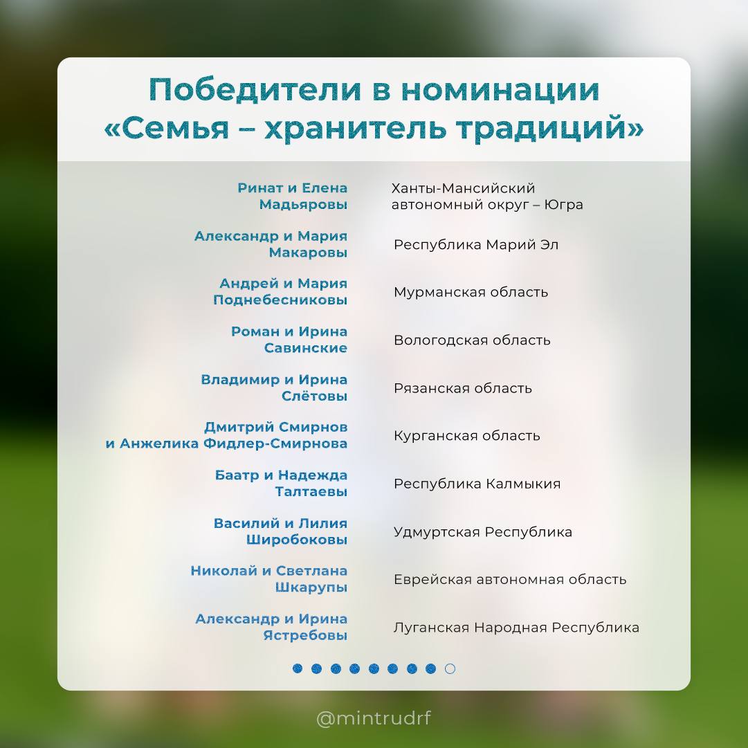 Поздравляем всех победителей! Ваш труд, забота о семье и верность традициям — пример для всей страны. Пусть ваши истории вдохновляют и объединяют новые поколения.