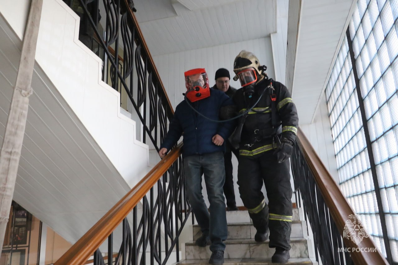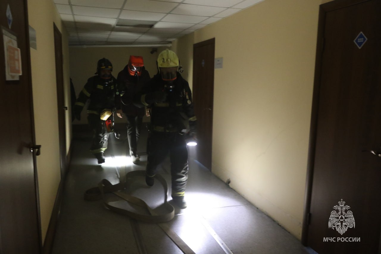 Сотрудники МЧС тренировались на объекте с массовым пребыванием людей - административном здании "Россетей".
