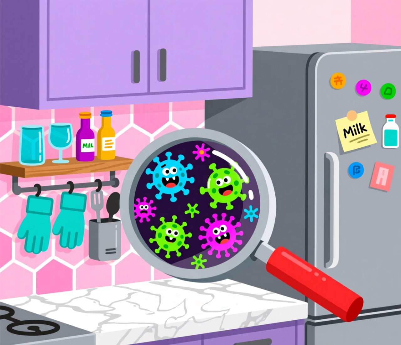 Холодильник – одно из главных мест скопления бактерий. Раз в неделю проводите ревизию содержимого, выбрасывайте просроченные продукты, протирайте полки и стенки специальным раствором.