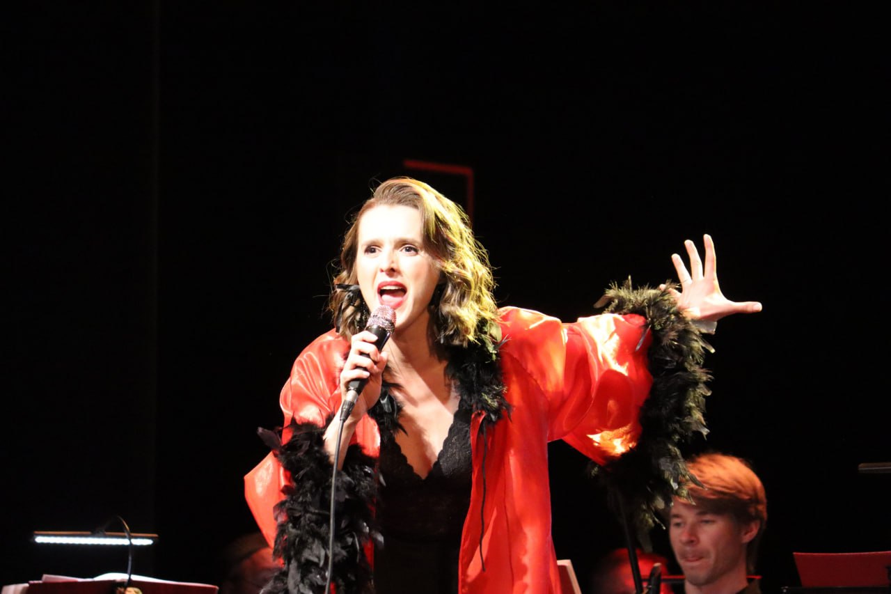 …Гул предвкушения перед уникальным исполнением мюзикла «Хиты Бродвея», сменился тишиной, и вот – вздох зала, падает сумрак и вспыхивает золото оркестра… Когда маэстро взмахнул рукой, эта пружина разжалась в первом порыве медных труб – мощном, роскошном, отбрасывающем всё тривиальное, в кружеве флейт – озорных, дерзких, и в этот льющийся поток меди и шёлка под сумасшедший пульс перкуссии вплелось вокально-драматическое искусство Любови Штарк…