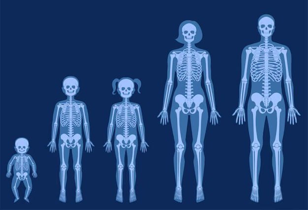 При рождении в теле ребенка около 300 костей, в зрелом возрасте их насчитывается всего 206