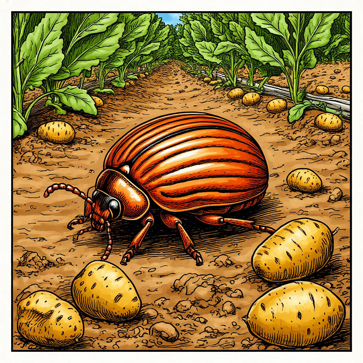 С приходом лета на огородах активно начинает действовать колорадский жук — один из самых опасных врагов картофеля. С июня этот вредитель становится особенно активным, нанося серьёзный урон не только картофельным, но и другим пасленовым культурам, включая баклажаны и томаты. Если не принять меры незамедлительно, ваш урожай может оказаться под угрозой.