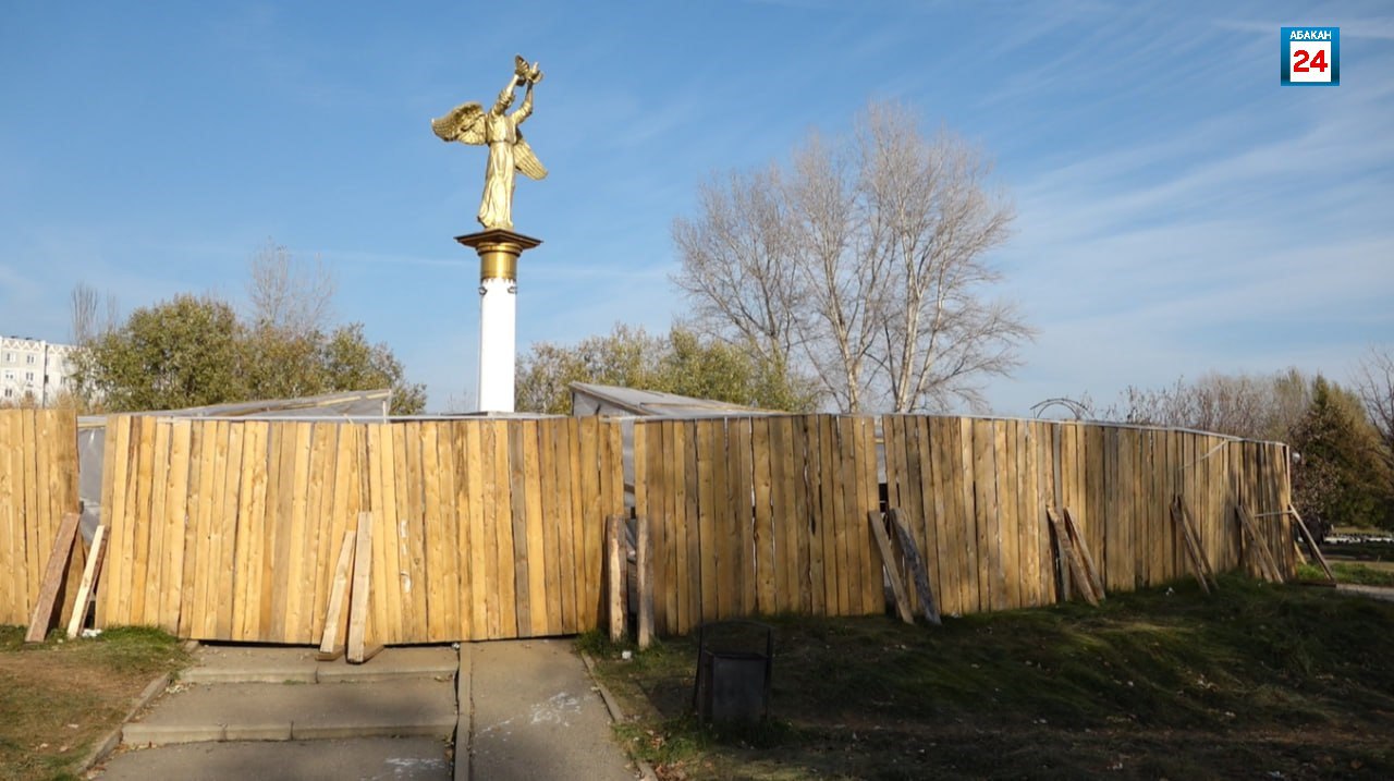 В гранит «одеваются» ступени и парапет «Доброго ангела мира» в Преображенском парке Абакана
