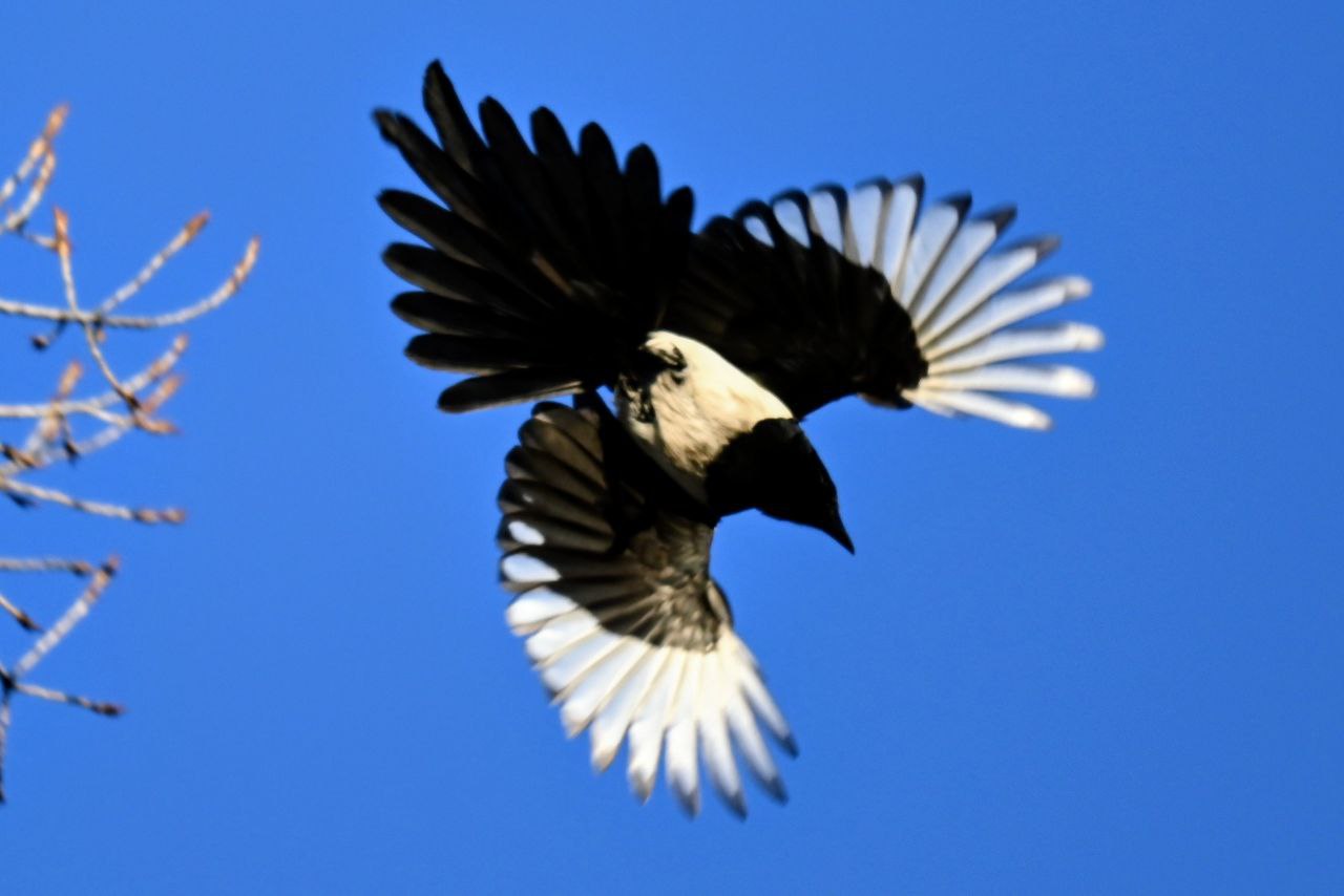Не крылья, а настоящий веер показала сорока в минусинском бору