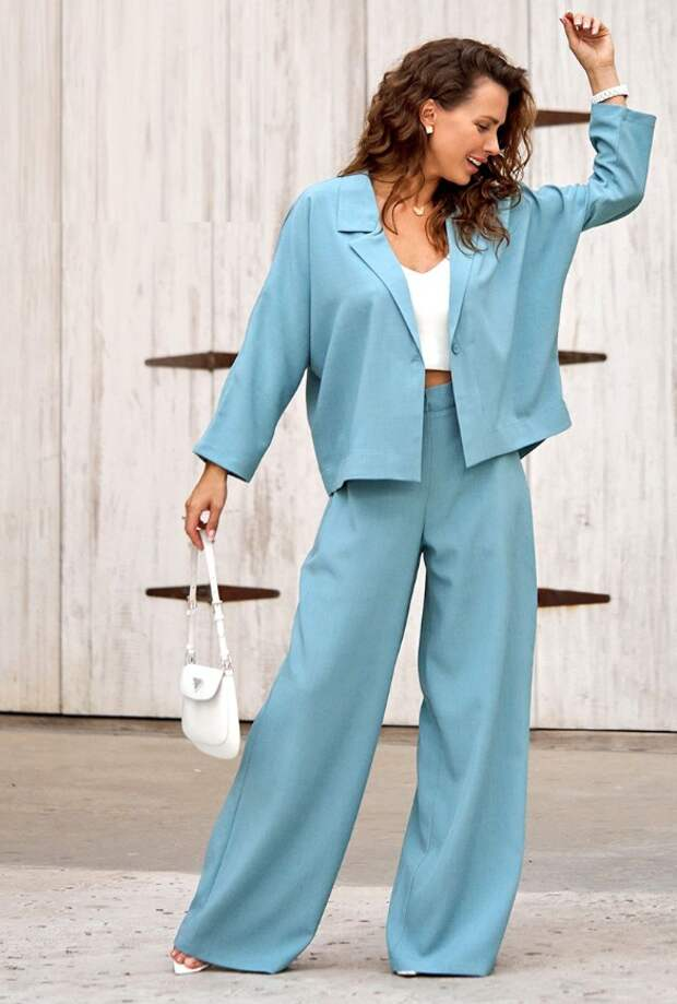 - Брючный костюм: Стильный брючный костюм с жакетом свободного кроя также станет отличным выбором. Костюм сливочного цвета с лаконичным белым топом будет выглядеть эффектно, при этом сохраняя сдержанность и благородство.