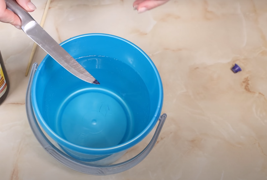 - В одну liter воды добавить небольшое количество марганцовки, чтобы раствор стал светло-фиолетовым.
