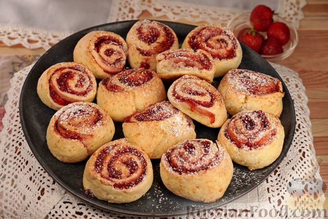 Творожные рулетики с клубничной начинкой – это сочетание легкости теста и сладости клубники, которое обязательно станет хитом на любом празднике. Сначала клубника варится с сахаром и загущается крахмалом, а затем заворачивается в тесто на основе творога и сливочного масла.