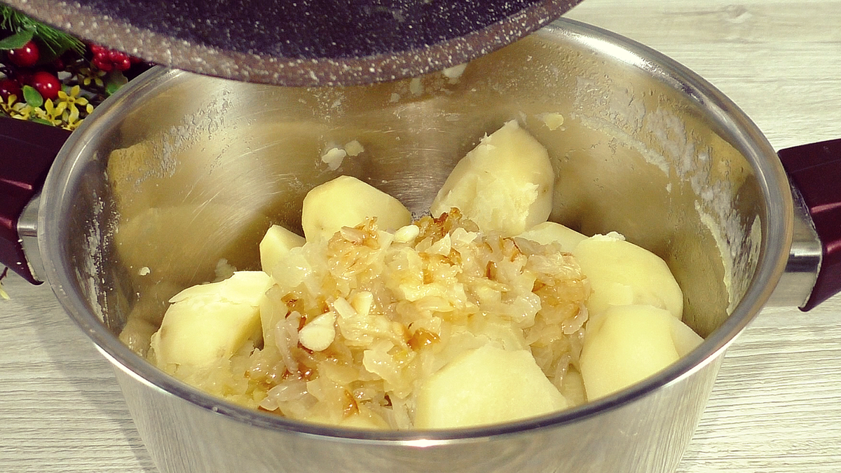 Для начинки нужно отварить картошку, а затем обжарить лук на растительном масле. Настоящие гурманы могут оставить часть лука для подачи к вареникам. Приправляем по вкусу и готовим пюре. Если картошка слишком сухая, можно добавить немного отвара для желаемой консистенции.