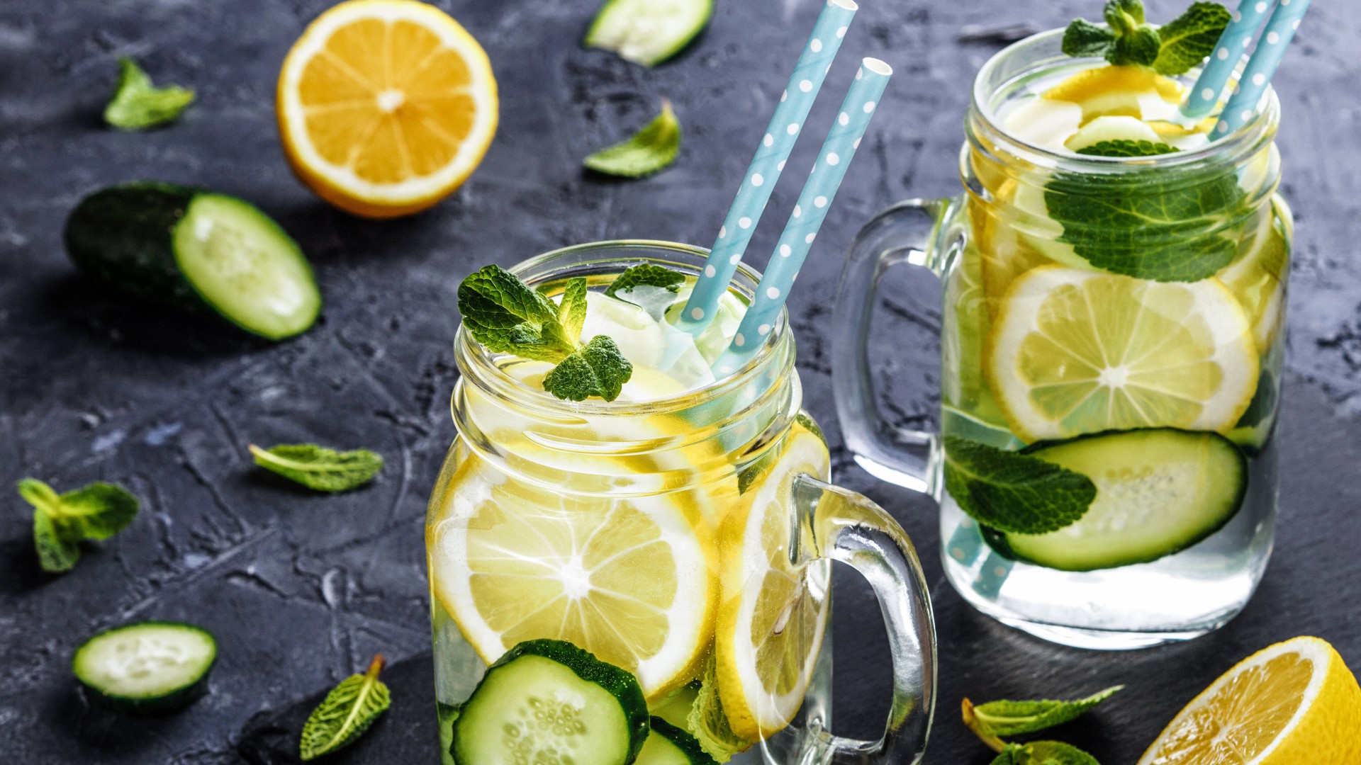 Огурец и лимон нарежьте кружочками, а затем переложите в кувшин. Листья мяты отделите от стебля и слегка помните, чтобы они дали сок, после чего тоже отправьте их в кувшин.