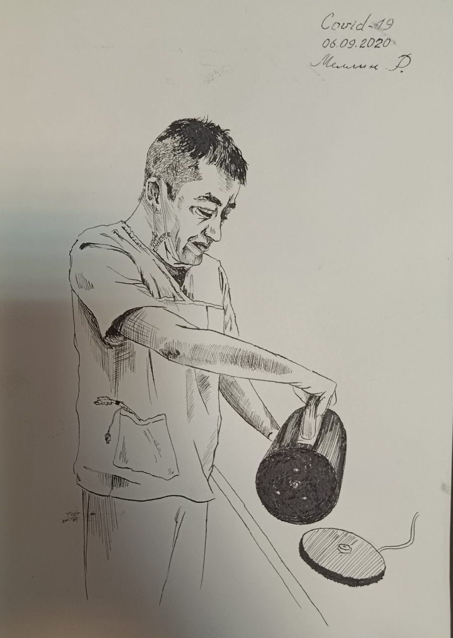Руслан Меллин – врач-хирург Республиканской клинической больницы имени Г.Я. Ремишевской. Он прекрасно владеет скальпелем и кистью. В детстве Руслан окончил художественную школу, но жизнь связал с медициной. Страсть к изобразительному искусству стала для него отдушиной, возможностью выплеснуть напряжение, эмоции или, наоборот, развернуть ракурс на вещи, не связанные с профессией, отвлечься…