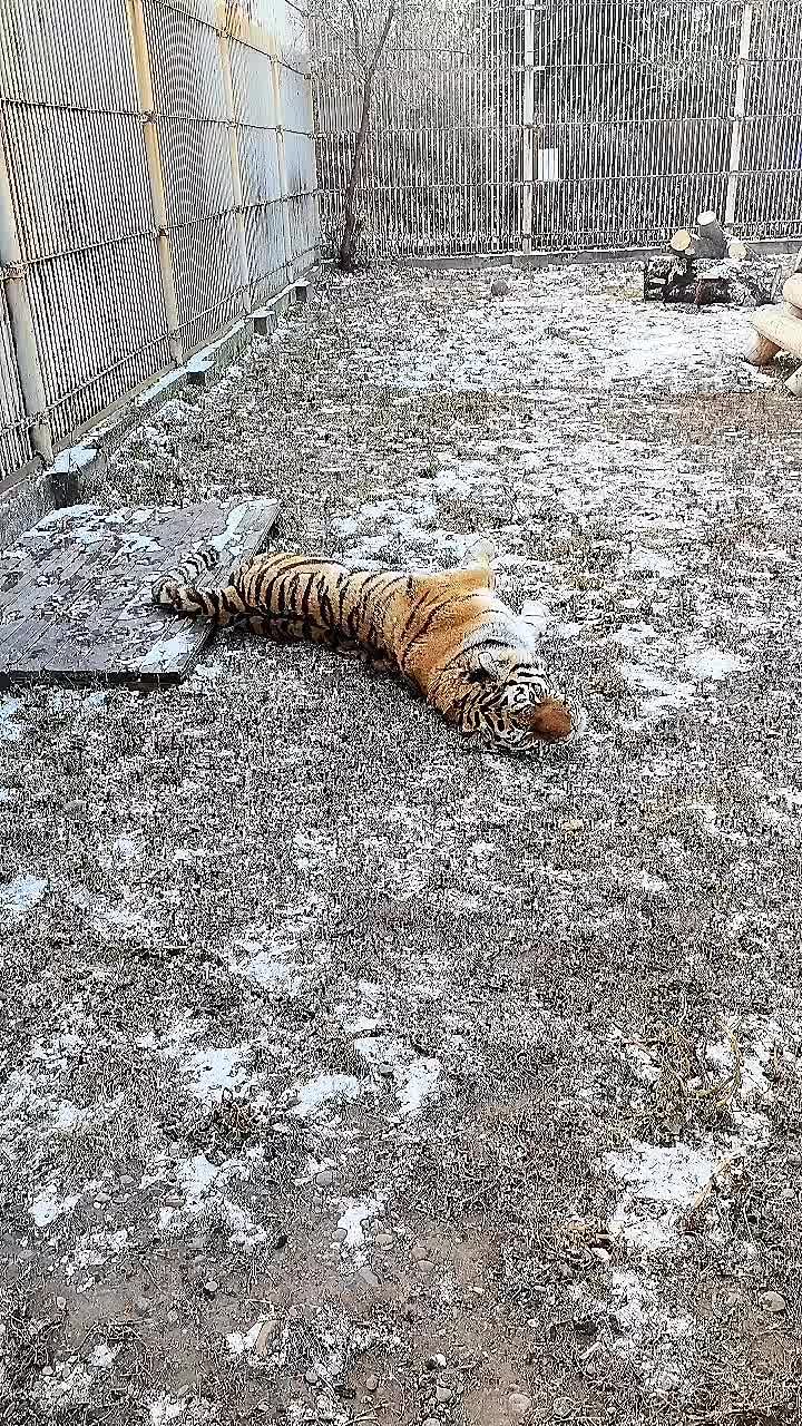Тигрица Юнона из абаканского зоопарка вот так искренне радуется снегу Точнее тому, что от него осталось