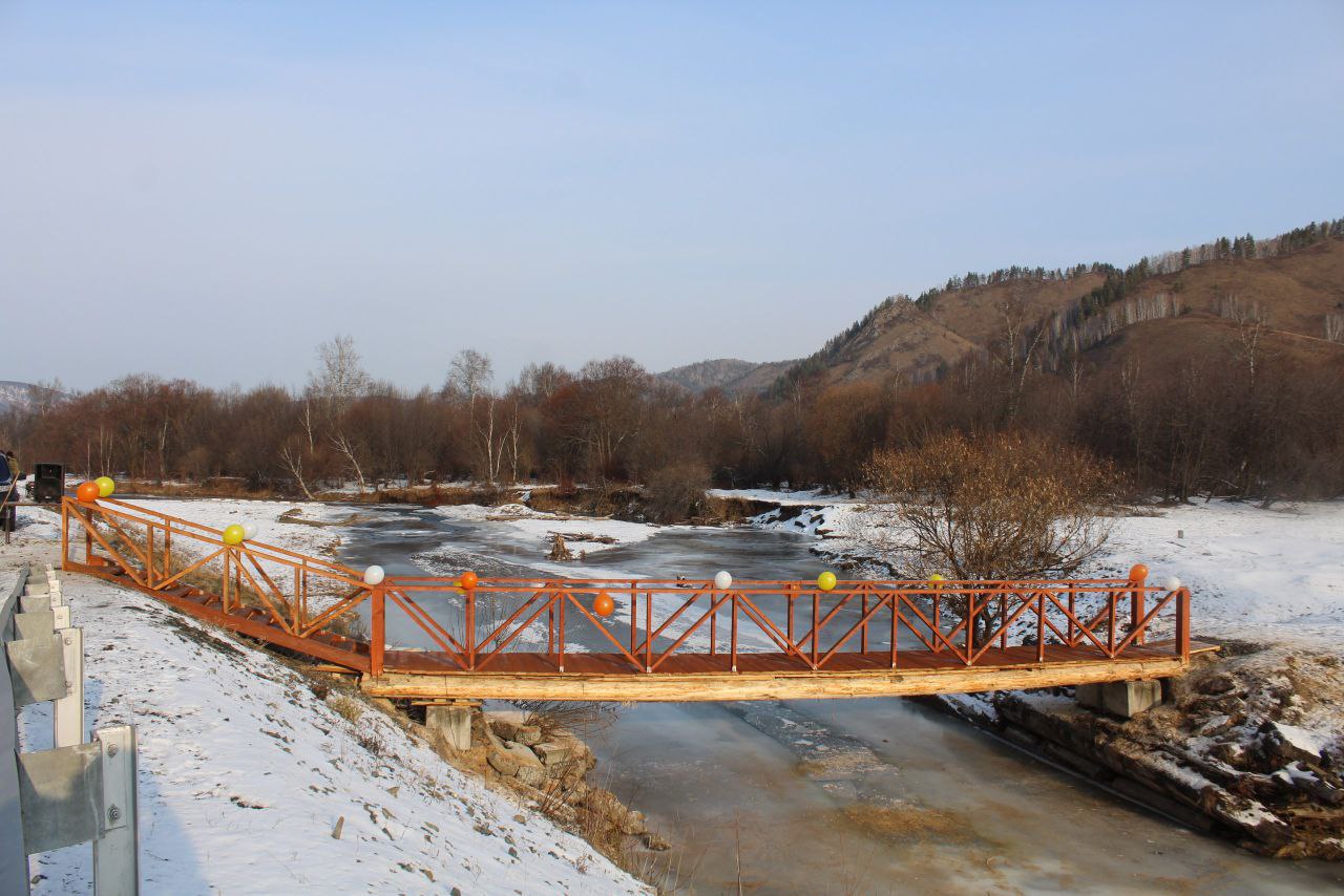 Новая пешеходная переправа соединила Малые и Большие Арбаты в Таштыпском районе- через реку Большеарбатка строители возвели деревянный мост. Он сократил расстояние между населёнными пунктами сразу почти на 10 км.