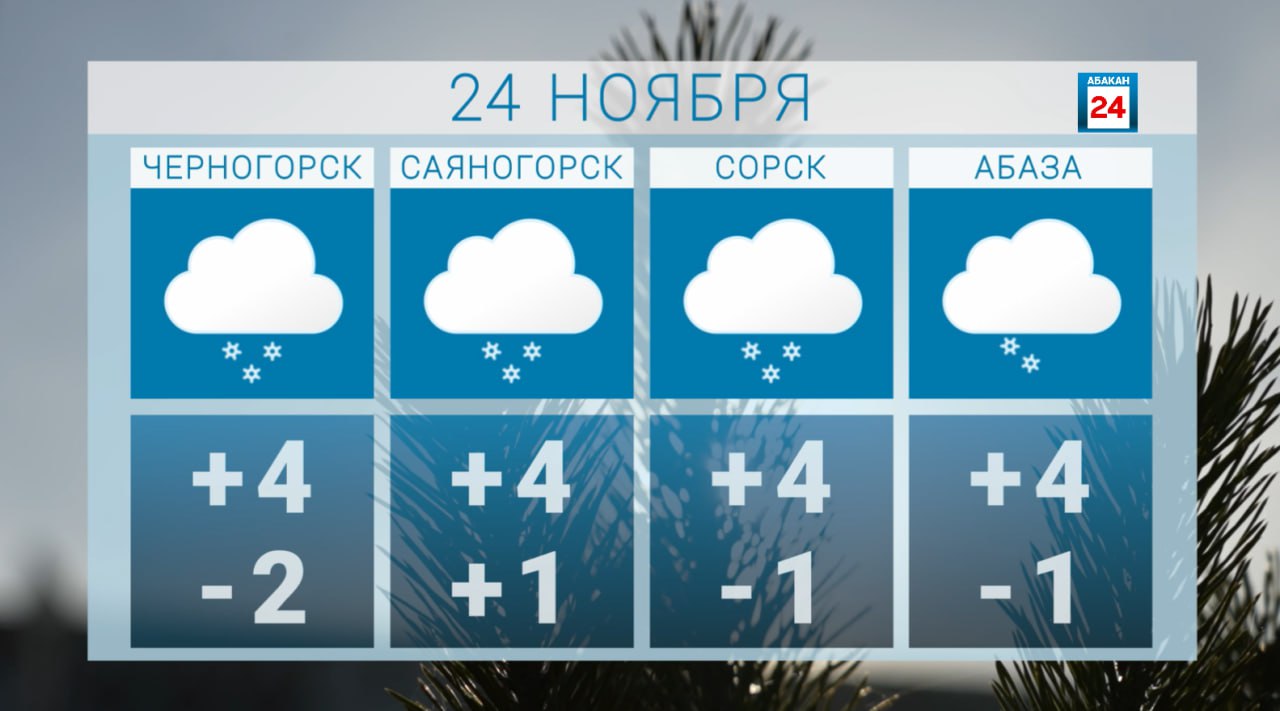 В ночь с 23 на 24 ноября по Республике переменная облачность, небольшой, местами умеренный снег в горах сильный.Ветер западный 5-10 м/с, местами порывы 15-20 м/с.Температура воздуха 0,-5°, в горах -7,-12°.На дорогах местами гололедица.В Абакане...