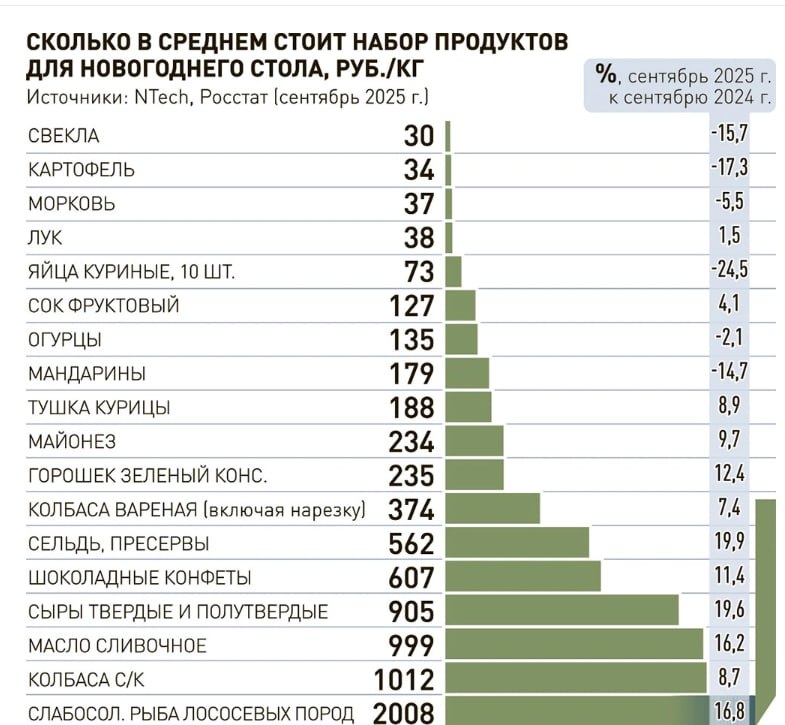 При этом главные атрибуты праздника — красная икра и мандарины, наоборот, снизились в цене. Например, ценники на цитрусовые в торговых сетях сейчас начинаются от 100-110 руб./кг, что примерно на 25% ниже, чем год назад. А цена красной икры в рознице благодаря удачной лососевой путине стала дешевле на 12% (в пределах 9-11 тыс. руб./кг)