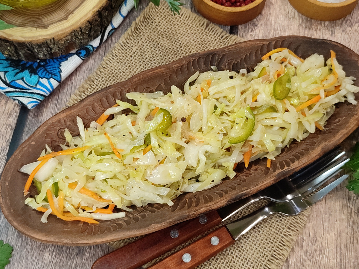 Удалите с огня, перемешайте еще раз, и не забудьте, что в горячем виде салат может показаться более соленым, чем будет после остывания. Переложите смесь в контейнер или банку и дайте настояться в холодильнике минимум час, а лучше – ночь. Через несколько часов капуста останется хрустящей, но уже полностью пропитанной всеми ароматами.
