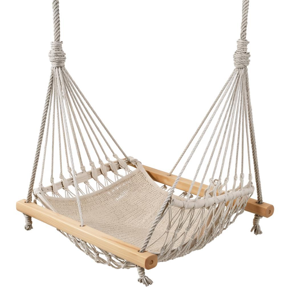 Качели легко устанавливаются, требуя всего лишь надежных точек крепления, будь то ветка дерева в саду или специальный крюк на балконе. Благодаря своей легкости, они не нуждаются в массивной конструкции, что позволяет создать удобное место для отдыха всего за полчаса.