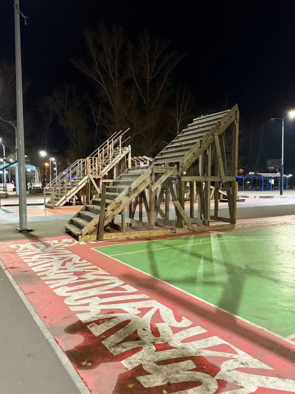 Работами занимается подрядчик из Красноярского края. Он устанавливал ледовые аттракционы здесь и в прошлом году.